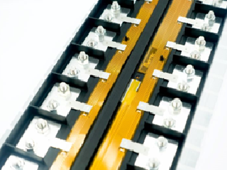 車載電池(バッテリー)に使用される電圧監視システム用のFPCは、バッテリーの各セルに繋ぎ、セル内の電圧を随時測定、感知することにより、過放電・過充電等を防止します。FPCを使用することにより、低背化と軽量化を実現できます。また、FPCに電子部品、コネクターやバスバーを一体化することで、バッテリーへの取り付け工程を自動化することが可能となります。